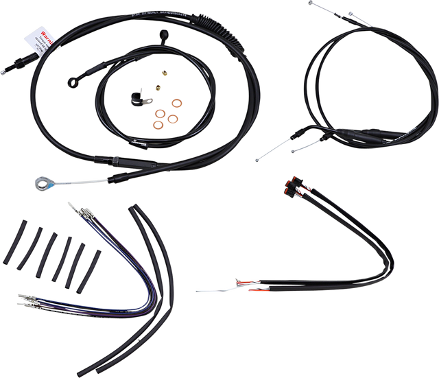 Kit includes extended brake line (unless noted), extended clutch cable/clutch line, extended throttle/idle cables as required and all necessary wiring