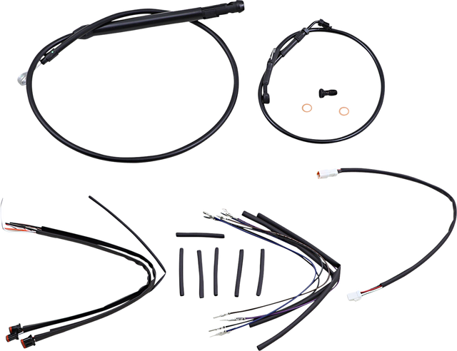 Kit includes extended brake line (unless noted), extended clutch cable/clutch line, extended throttle/idle cables as required and all necessary wiring