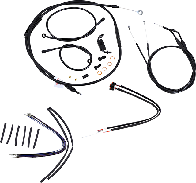 Kit includes extended brake line (unless noted), extended clutch cable/clutch line, extended throttle/idle cables as required and all necessary wiring