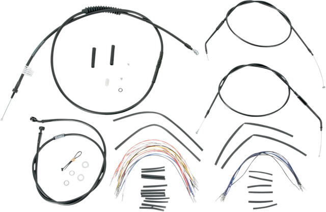 Kit includes extended brake line (unless noted), extended clutch cable/clutch line, extended throttle/idle cables as required and all necessary wiring
