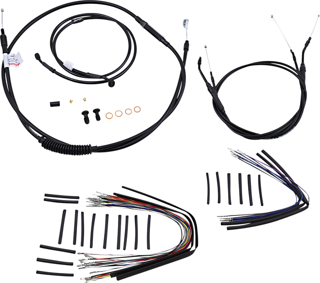 Kit includes extended brake line (unless noted), extended clutch cable/clutch line, extended throttle/idle cables as required and all necessary wiring