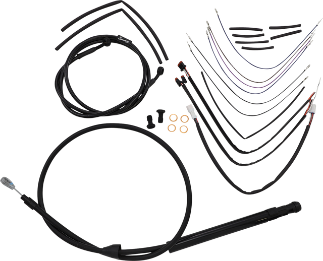 Kit includes extended brake line (unless noted), extended clutch cable/clutch line, extended throttle/idle cables as required and all necessary wiring