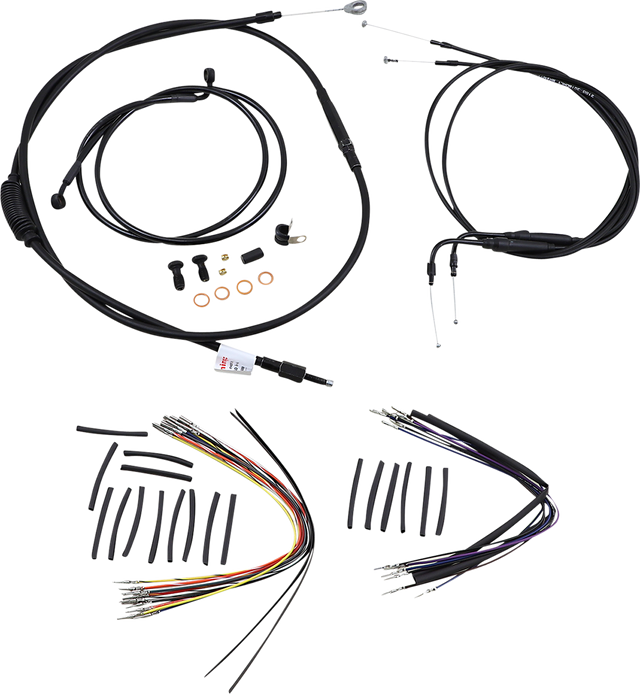 Kit includes extended brake line (unless noted), extended clutch cable/clutch line, extended throttle/idle cables as required and all necessary wiring