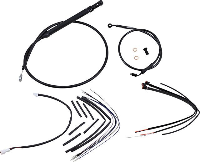 Kit includes extended brake line (unless noted), extended clutch cable/clutch line, extended throttle/idle cables as required and all necessary wiring