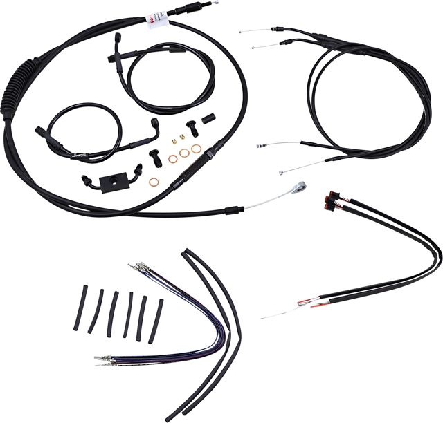 Kit includes extended brake line (unless noted), extended clutch cable/clutch line, extended throttle/idle cables as required and all necessary wiring