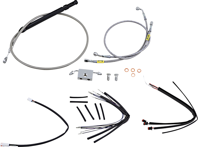 Kits include extended brake line, extended clutch cable/clutch line, extended throttle/idle cables as required and all necessary wiring extensions