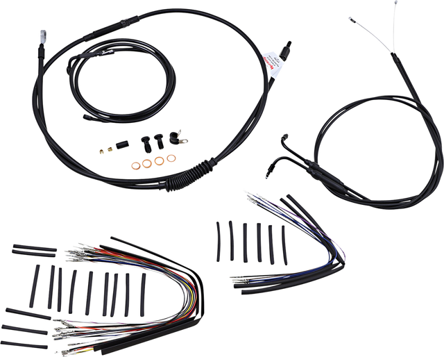 Kit includes extended brake line (unless noted), extended clutch cable/clutch line, extended throttle/idle cables as required and all necessary wiring