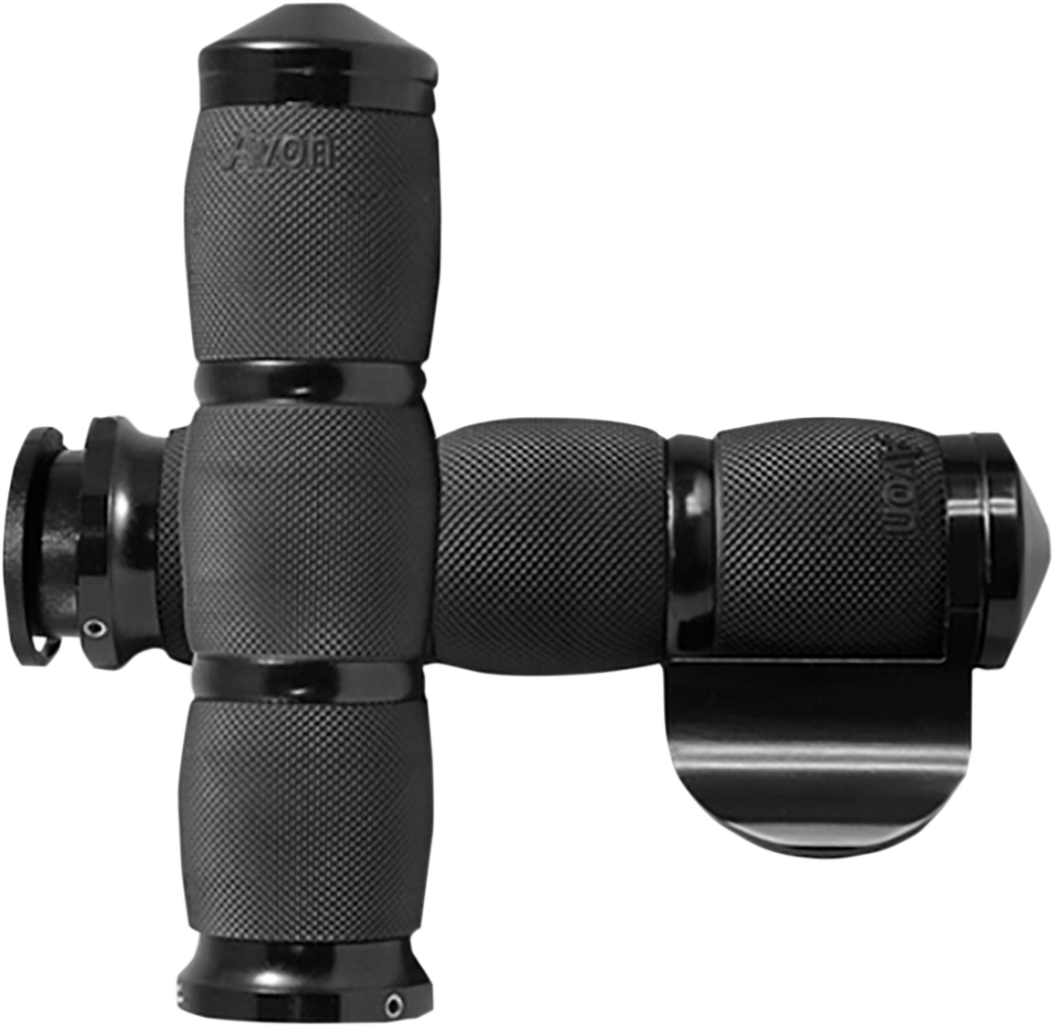 Feature billet end caps and rings with ergonomic AVON seamless rubber grip technology