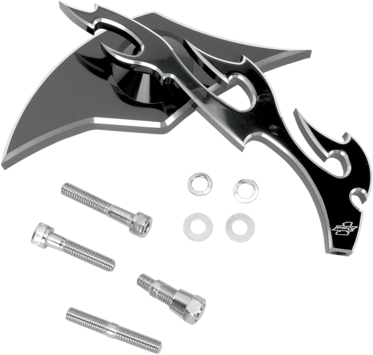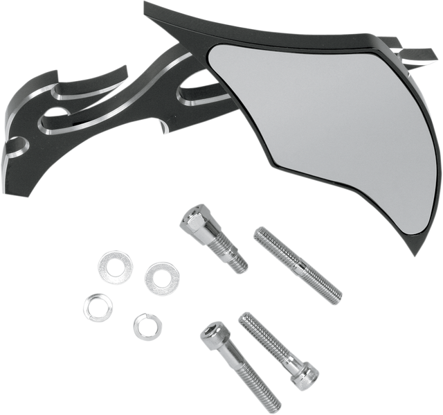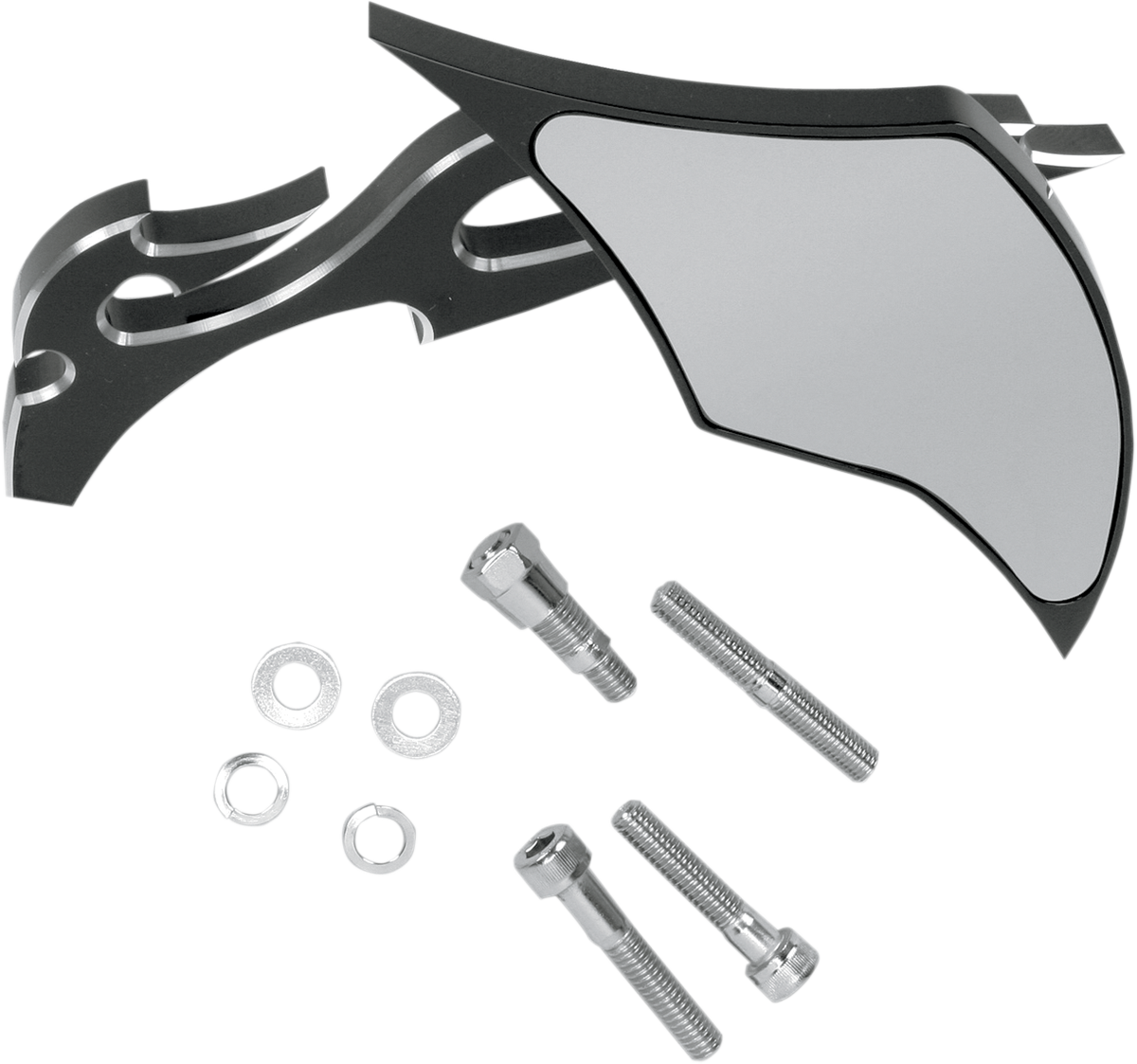 Mirror - Flame - Side View - Milled - Oblong - Black/Chrome - Right