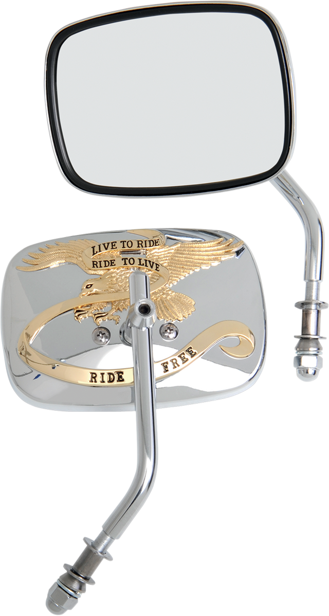 Mirrors - Live To Ride - Side View - Rectangle - Chrome/Gold - Pair
