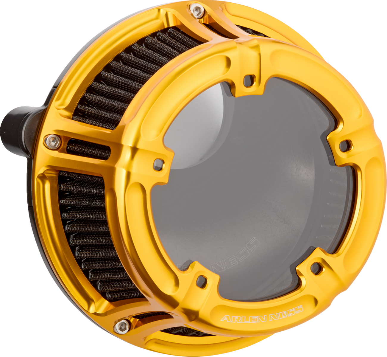 Forged billet aluminum air cleaner featuring a polycarbonate window to view the internal working of the air intake system
