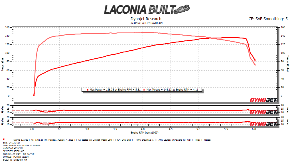 Excellent low to mid rpm power (1500-5600+ rpm)