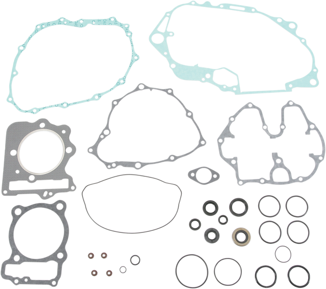 Set includes all gaskets and oil seals necessary to rebuild the entire engine and transmission