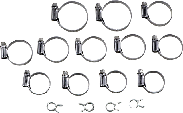 Features marine-grade 18/8 stainless steel clamps with rounded edges, smooth inners and polished surfaces; contains all clamps necessary to complete installation of radiator hose kit