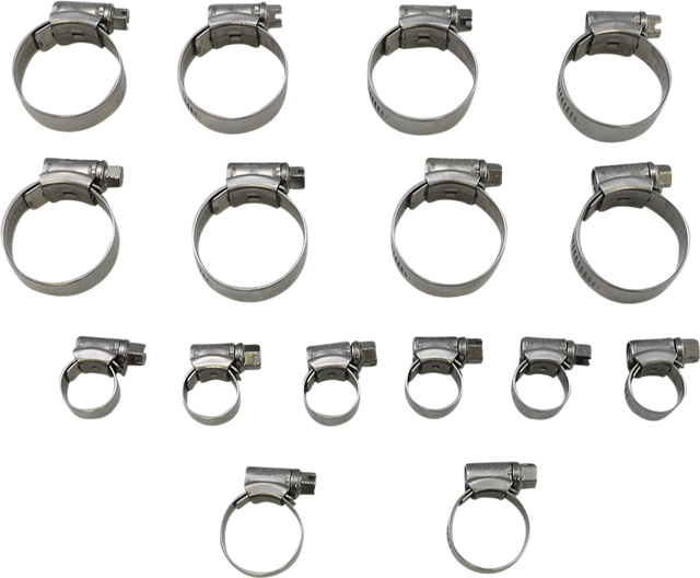 Features marine-grade 18/8 stainless steel clamps with rounded edges, smooth inners and polished surfaces; contains all clamps necessary to complete installation of radiator hose kit