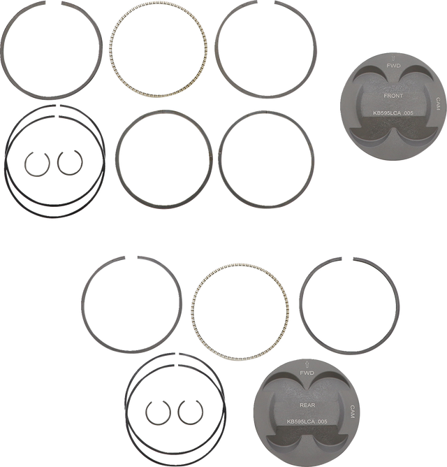 Each kit contains two pistons, pins, spiral-lock pin clips and Hastings moly rings