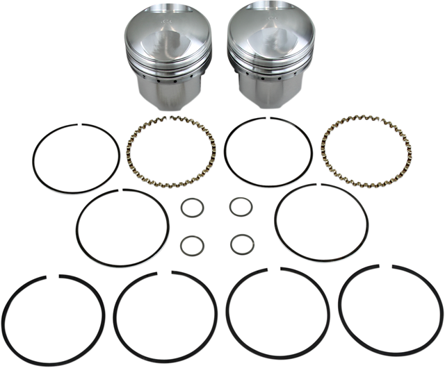 Each kit contains two pistons, pins, spiral-lock pin clips and Hastings moly rings