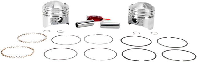Each kit contains two pistons, pins, spiral-lock pin clips and Hastings moly rings
