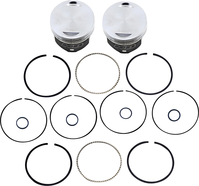 Each kit contains two pistons, pins, spiral-lock pin clips and Hastings moly rings