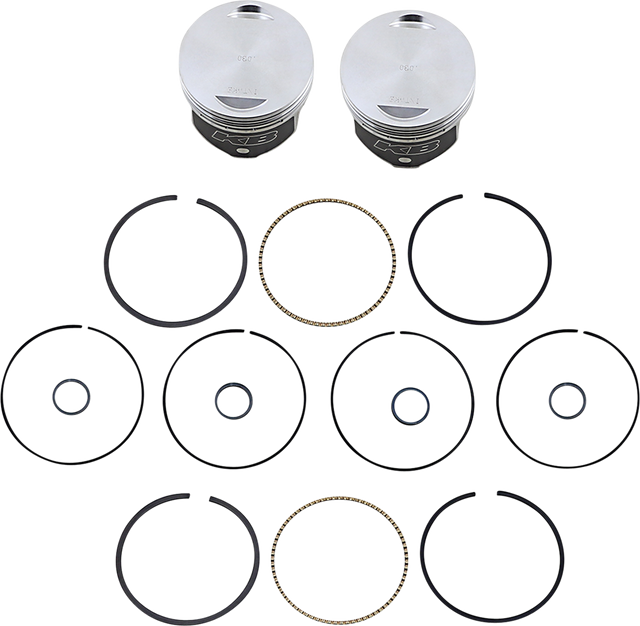 Each kit contains two pistons, pins, spiral-lock pin clips and Hastings moly rings