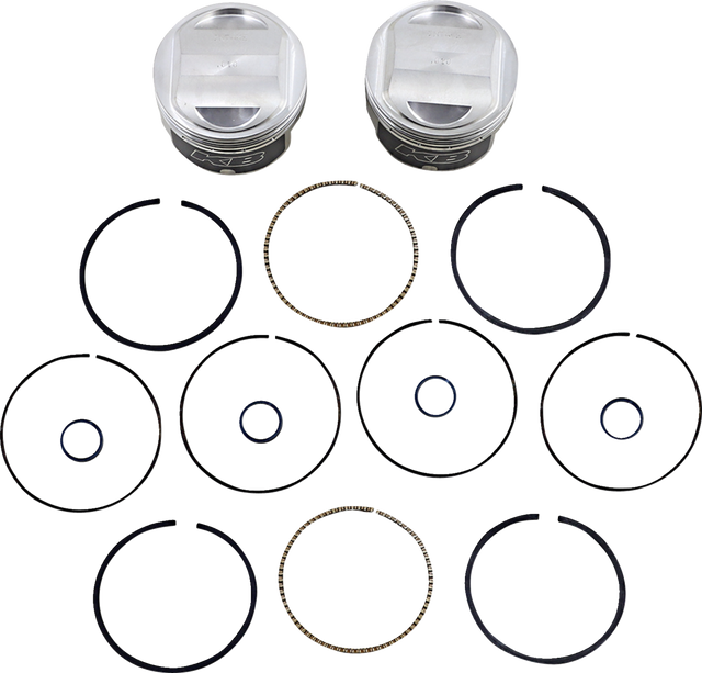 Each kit contains two pistons, pins, spiral-lock pin clips and Hastings moly rings