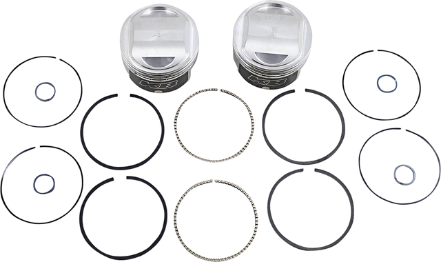 Each kit contains two pistons, pins, spiral-lock pin clips and Hastings moly rings