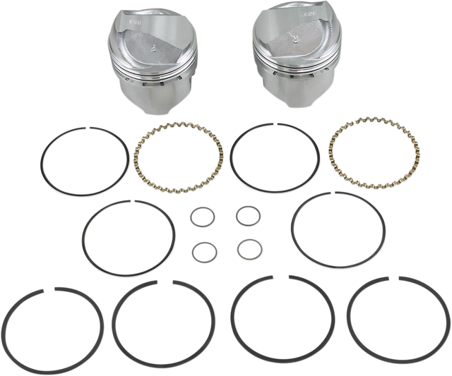 Each kit contains two pistons, pins, spiral-lock pin clips and Hastings moly rings