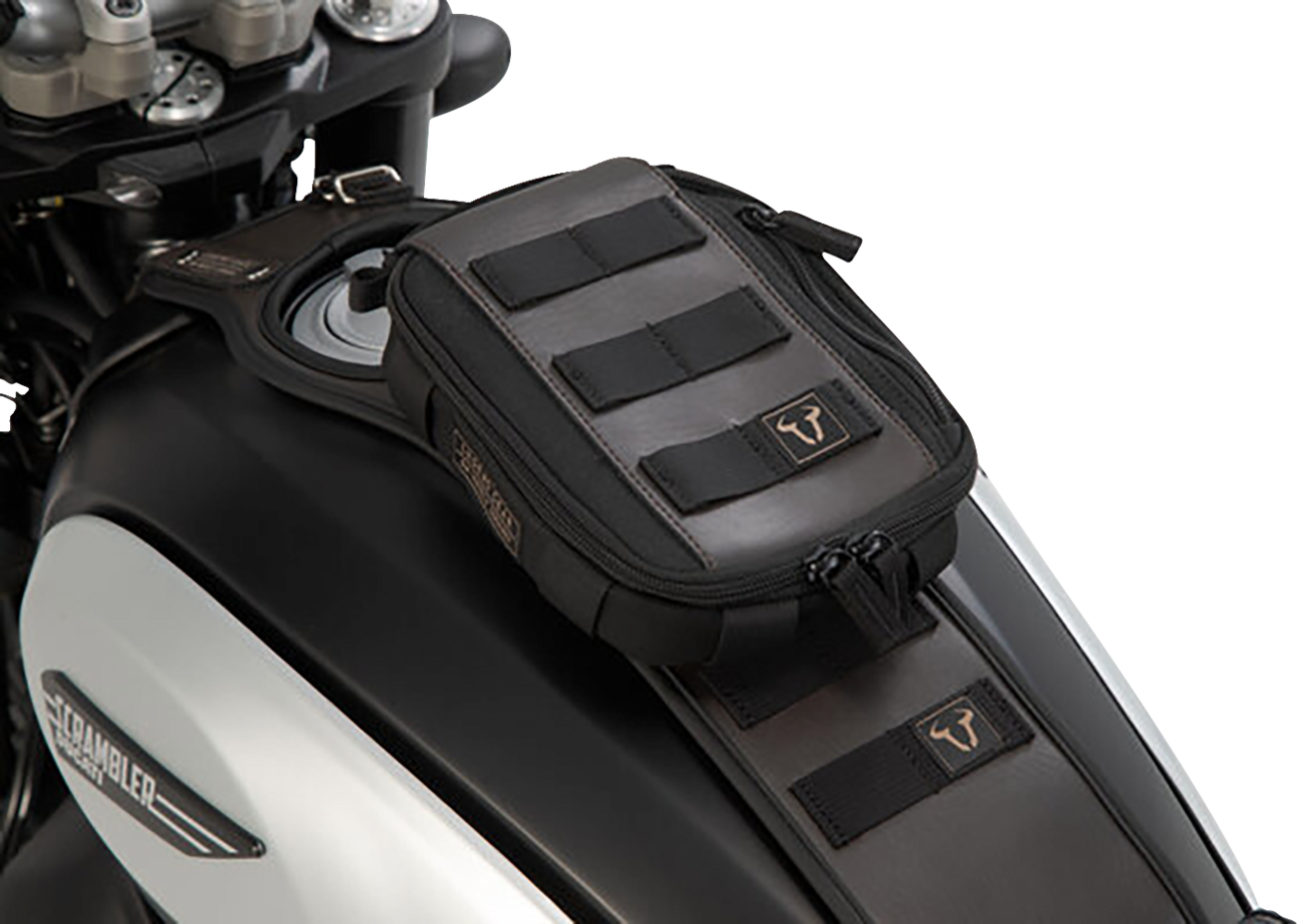 An alternative to the strap is the compact Legend Gear LT1 tank bag, which can be attached to almost all steel fuel tanks using magnets.