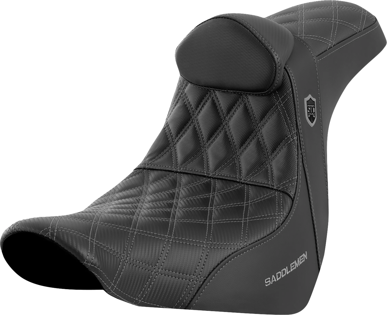 Crafted with Saddlemen’s carbon fiber front, black gripper lumbar, and passenger area and Saddlehyde sides with Saddlemen LS stitching