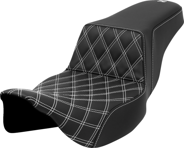 Step-Up Seat - Front Lattice Stitch - White Stitch - Extended Reach - FLH/FLT \'08-\'23 2008 - 2023