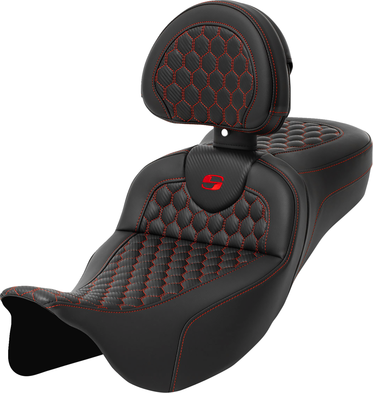 RoadSofa™ Seat - Honeycomb - Red Stitch - with Backrest - Extended Reach - FLH/FLT \'08-\'23 2008 - 2023