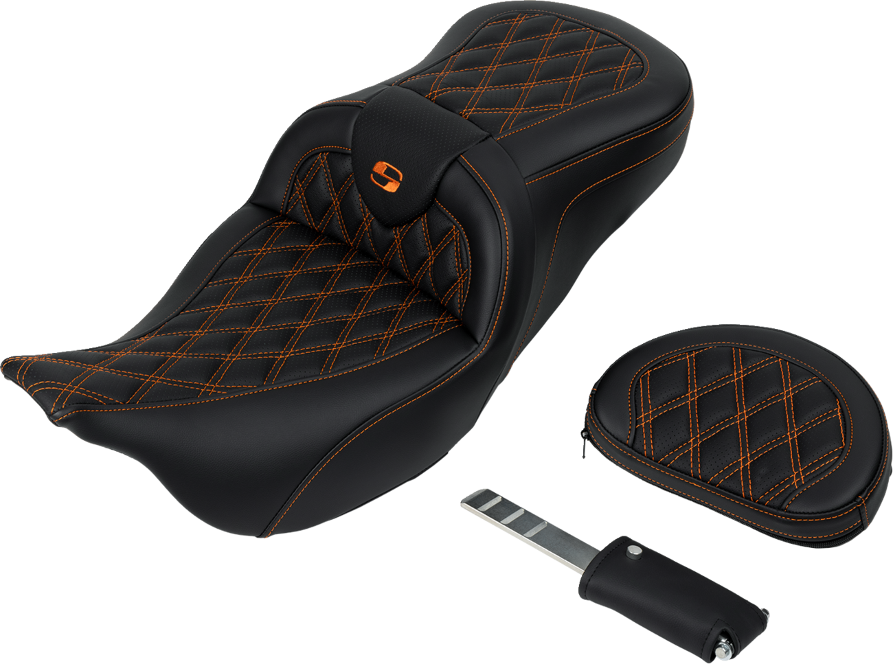 Roadsofa™ Seat - with Backrest - Orange Stitch - FL \'08-\'23 2008 - 2023 is backordered and will ship as soon as it is back in stock.