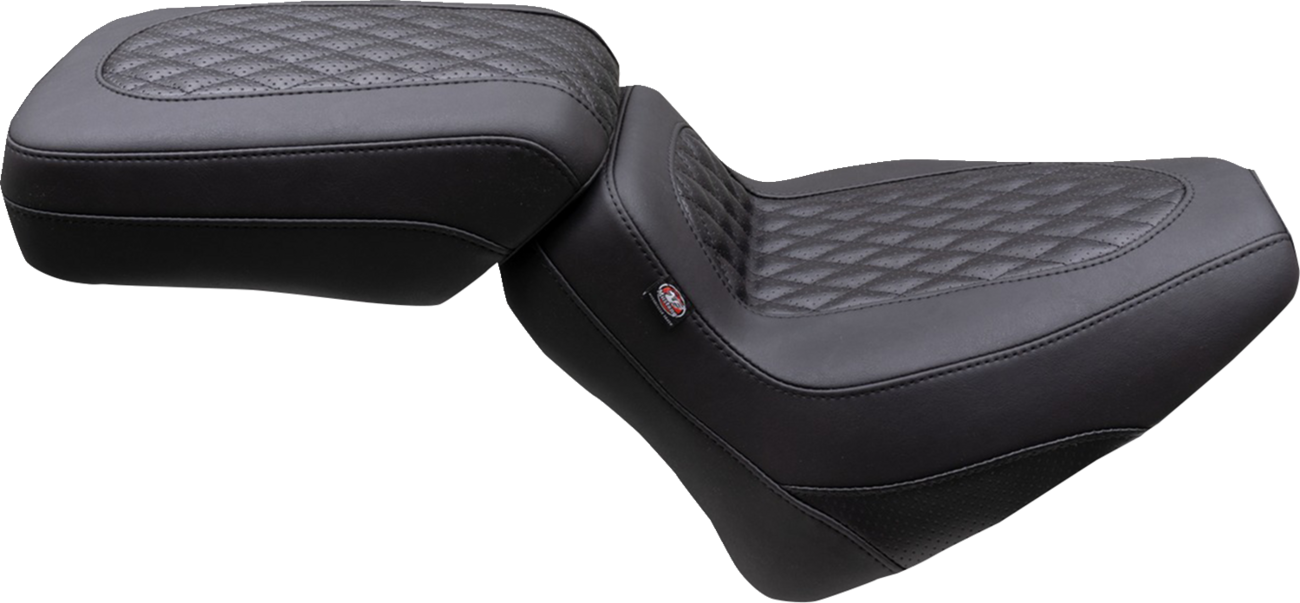 Bucketed rider area provides excellent support and diamond-stitched perforated center panels