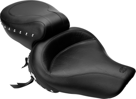 Wide Solo Seat - With Backrest - Black - Studded W/Concho - Softail \'84-\'99 1984 - 1999