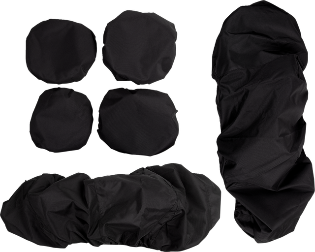 Neoprene side panels and heavy Velcro straps on back and sides of seat covers lock covers in place so they stay in position no matter how rough the trail gets
