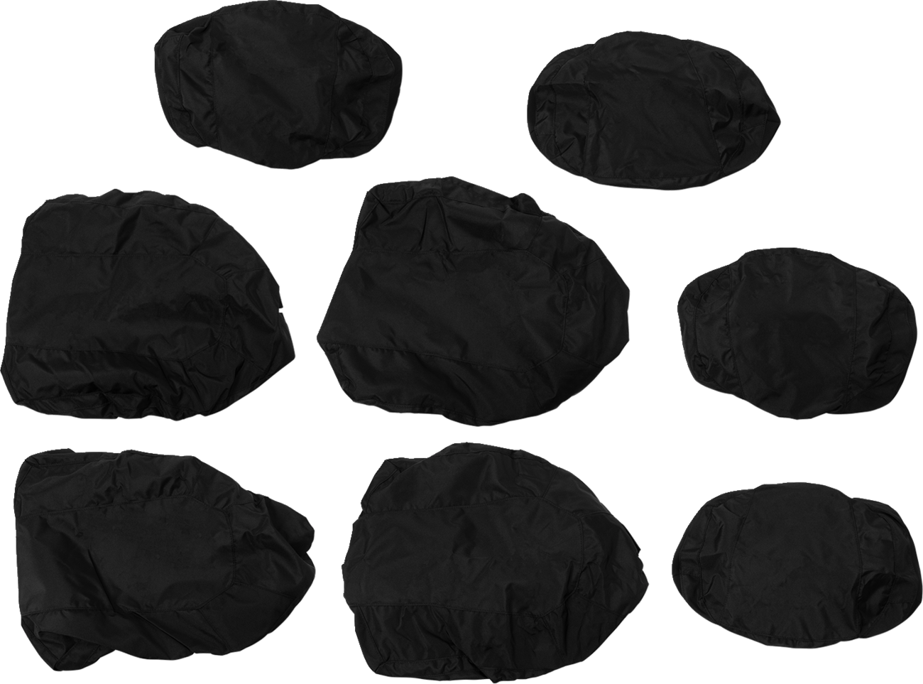 Neoprene side panels and heavy Velcro straps on back and sides of seat covers lock covers in place so they stay in position no matter how rough the trail gets