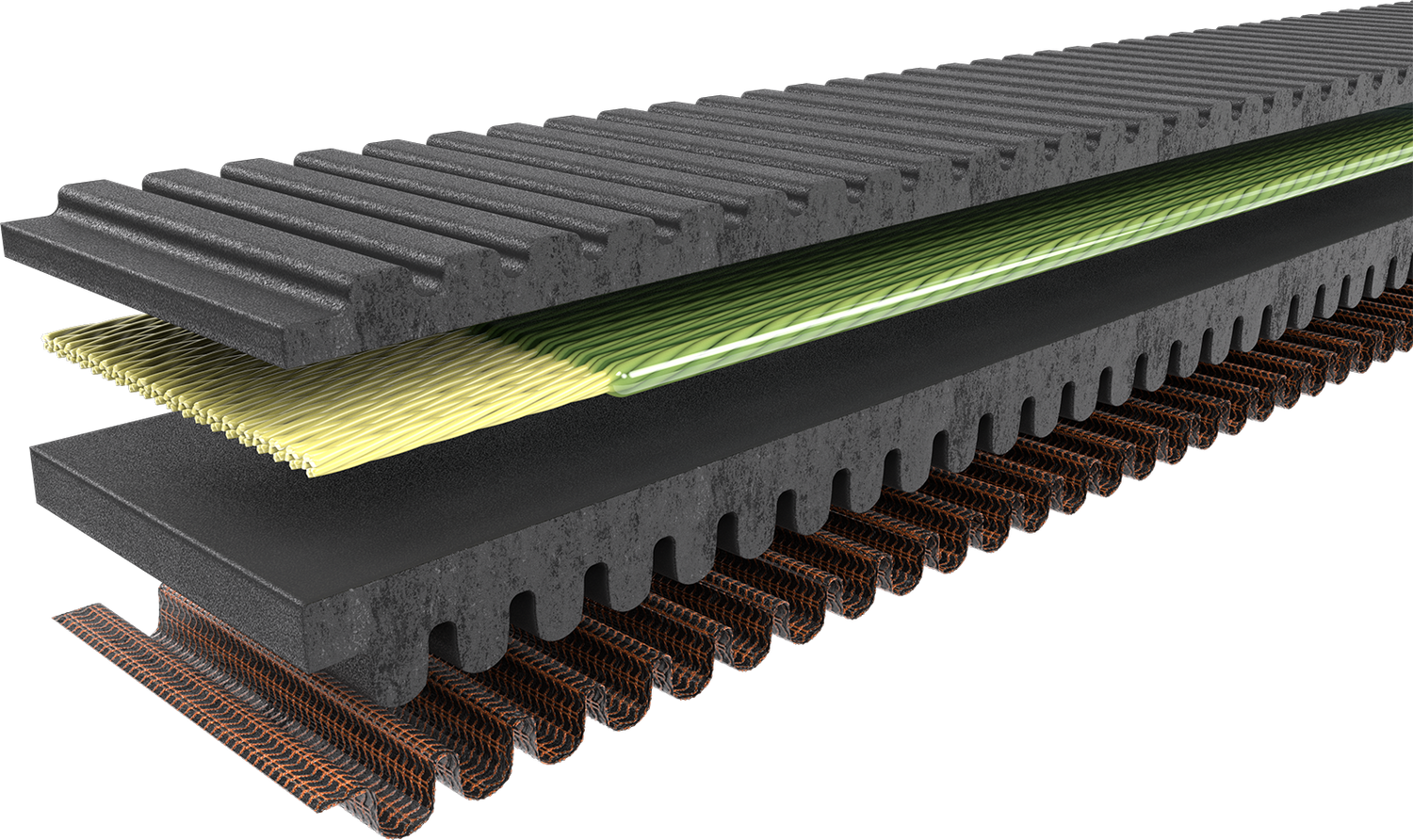 Built with Gates® patented fiber-reinforced EE (ethyl elastomer) compound for maximum transverse stiffness and heat resistance