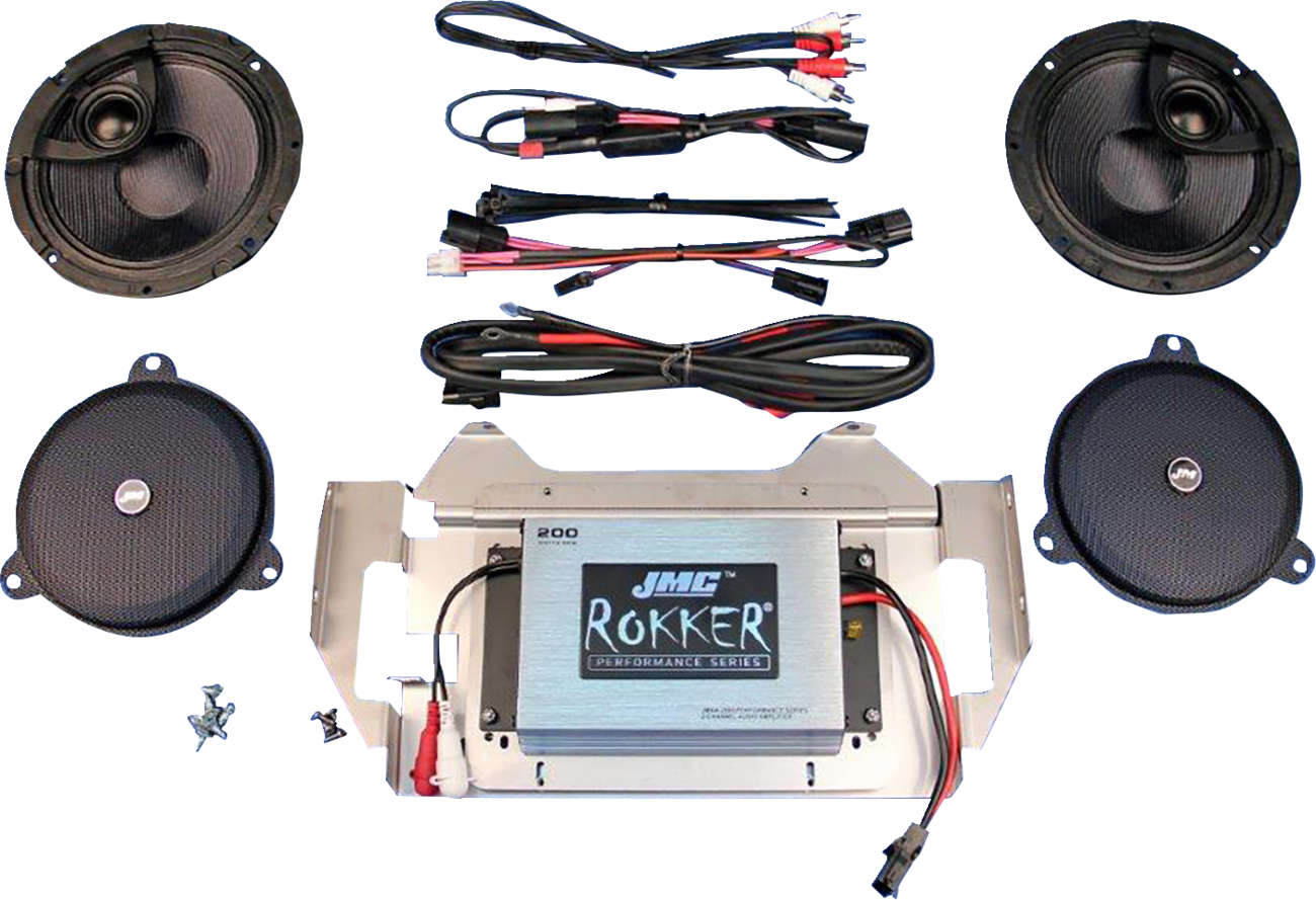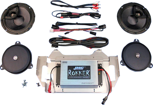 The ROKKER 2-channel 200 W amplifier kit has been designed specifically for use in the fairing with the stock Harley 4.3 Std, 6.5GT or GTS touch-screen radio, and is tuned for the stock Harley flash, NO SPECIAL FLASH needed