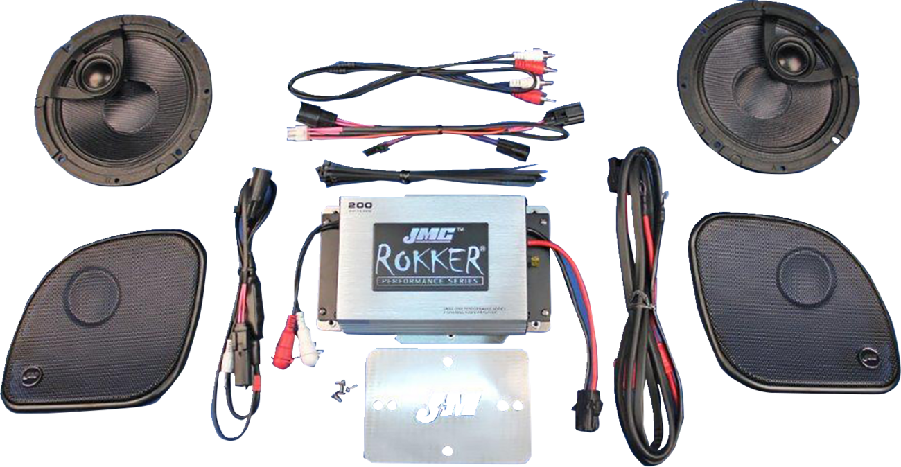 The ROKKER 2-channel 200 W amplifier kit has been designed specifically for use in the fairing with the stock Harley 4.3 Std, 6.5GT or GTS touch-screen radio, and is tuned for the stock Harley flash, NO SPECIAL FLASH needed
