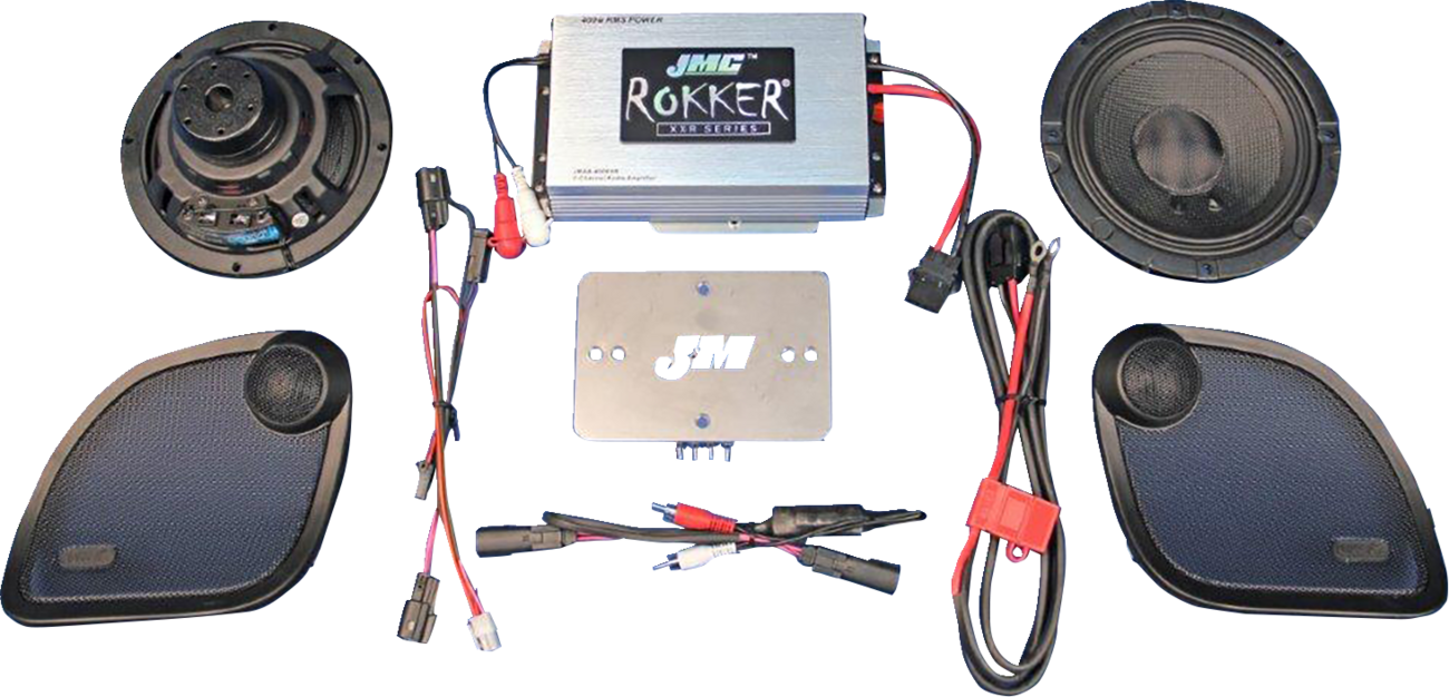 Custom made Plug-and-Play JMC red-band wiring harnesses are included with this complete amplifier kit, top quality heavy gauge power/ground wires are used for the fused battery connection, along with all necessary mounting hardware