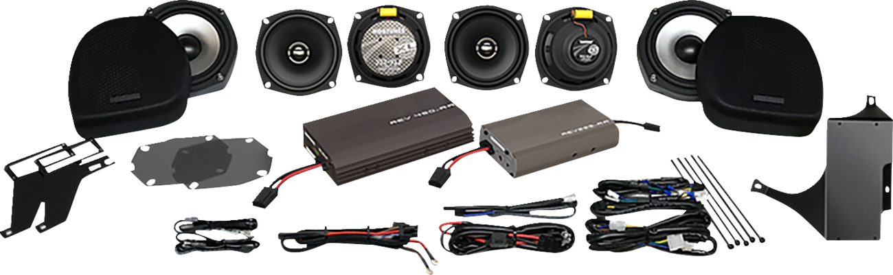 Includes XL Series 5-1/4\" front and rear speakers plus 7\" XL speakers for vented lower fairing glove boxes