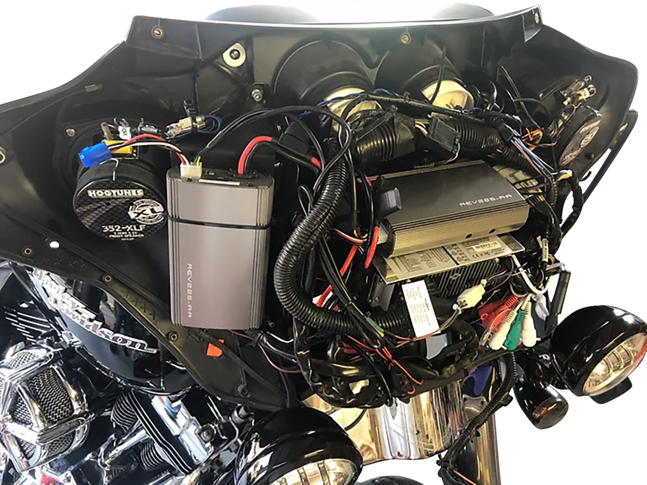 Both amplifiers fit inside the fairing, easy bolt-in installation