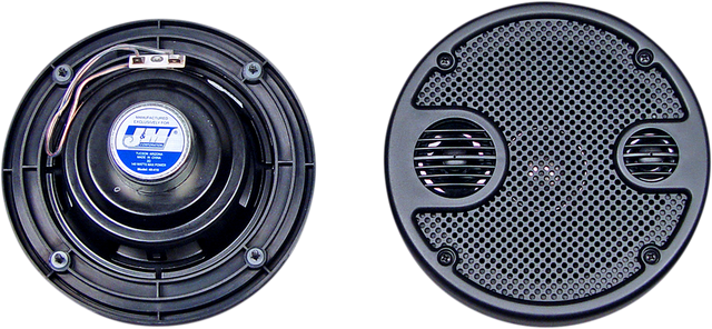 Features a waterproof injection-molded polycarbonate woofer cone, high-flux strength but light-weight Neodymium magnet, high efficiency voice coil, and the latest design grillwork with mounted black-mylar tweeter and midrange drivers, with a second set of paintable grills also included