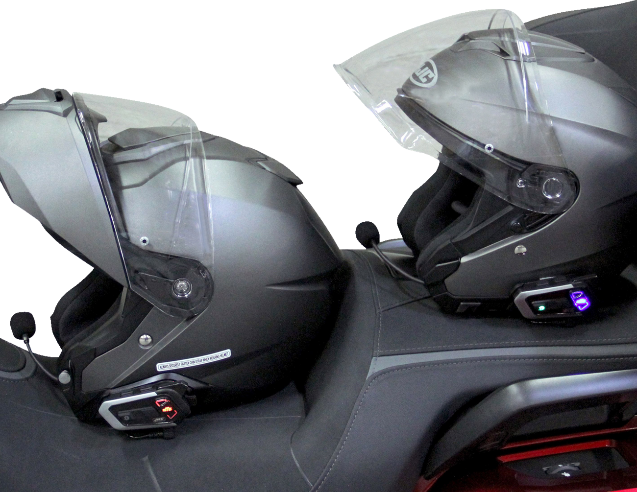 Mesh helmet-to-helmet intercom for up to 8 riders, at real-world distances to 800 m, full hands free cell phone features and built in FM radio