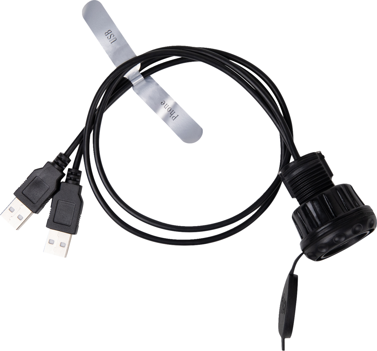 AUX input connection panel and installation hardware: Carling style accessory plug for 3.5 mm, USB-A, USB-C connections and all the needed installation hardware