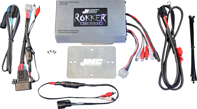 Custom made Plug-and-Play JMC red-band wiring harnesses are included with this complete amplifier kit, top quality heavy gauge power/ground wires are used for the fused battery connection, along with all necessary mounting hardware and complete installation/operation instructions