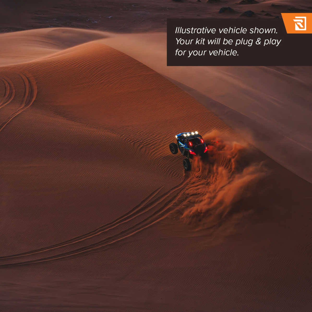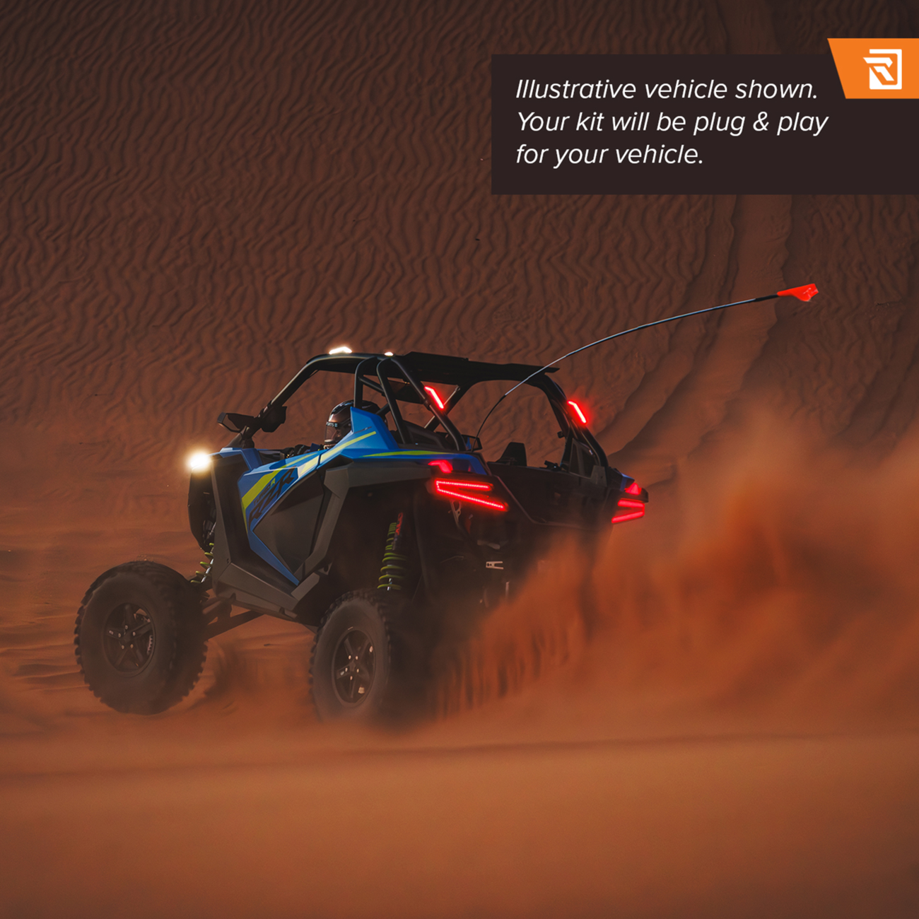 Includes roll cage mounting adapter plate, brake light flash modulator and Plug-and-Play harness