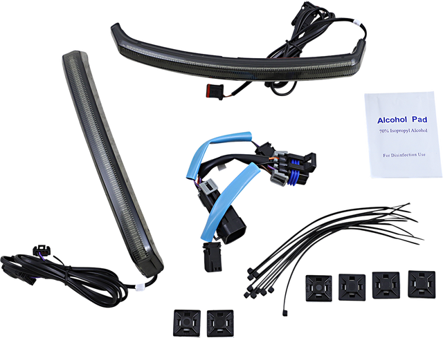Plug and play wiring adapter plugs in under the seat with pigtails for easy connections to the left and right saddlebag lights