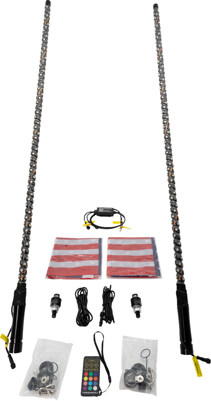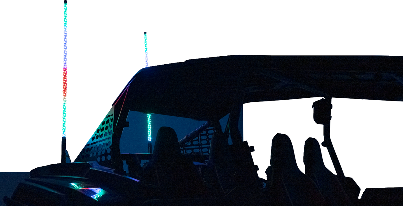 Turn signal (amber), reverse (white), and brake (red) functions remain active when whips are switched off via rocker switch part # 0616-0438 (sold separately)