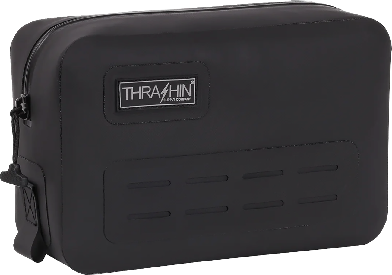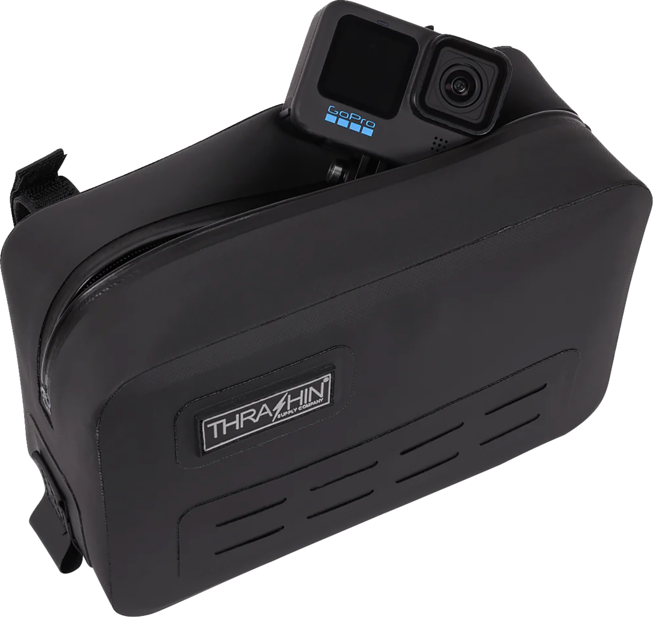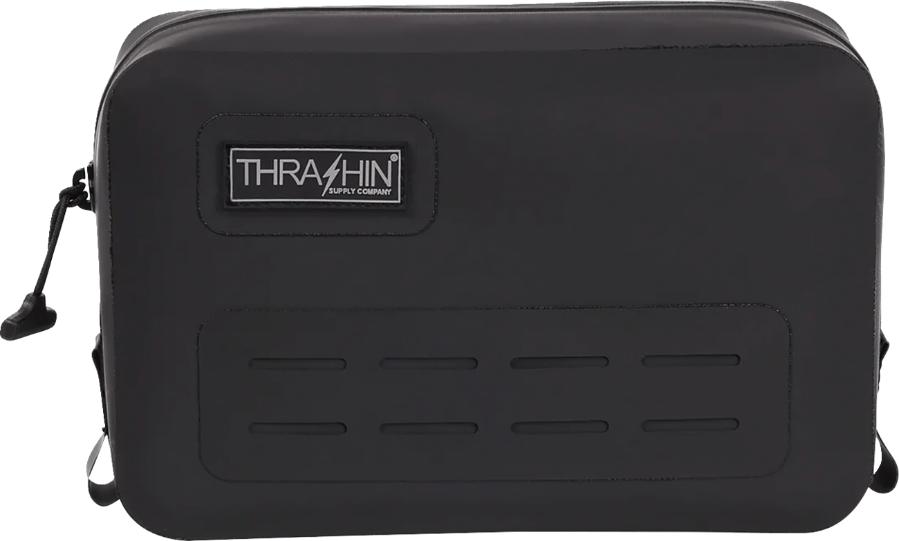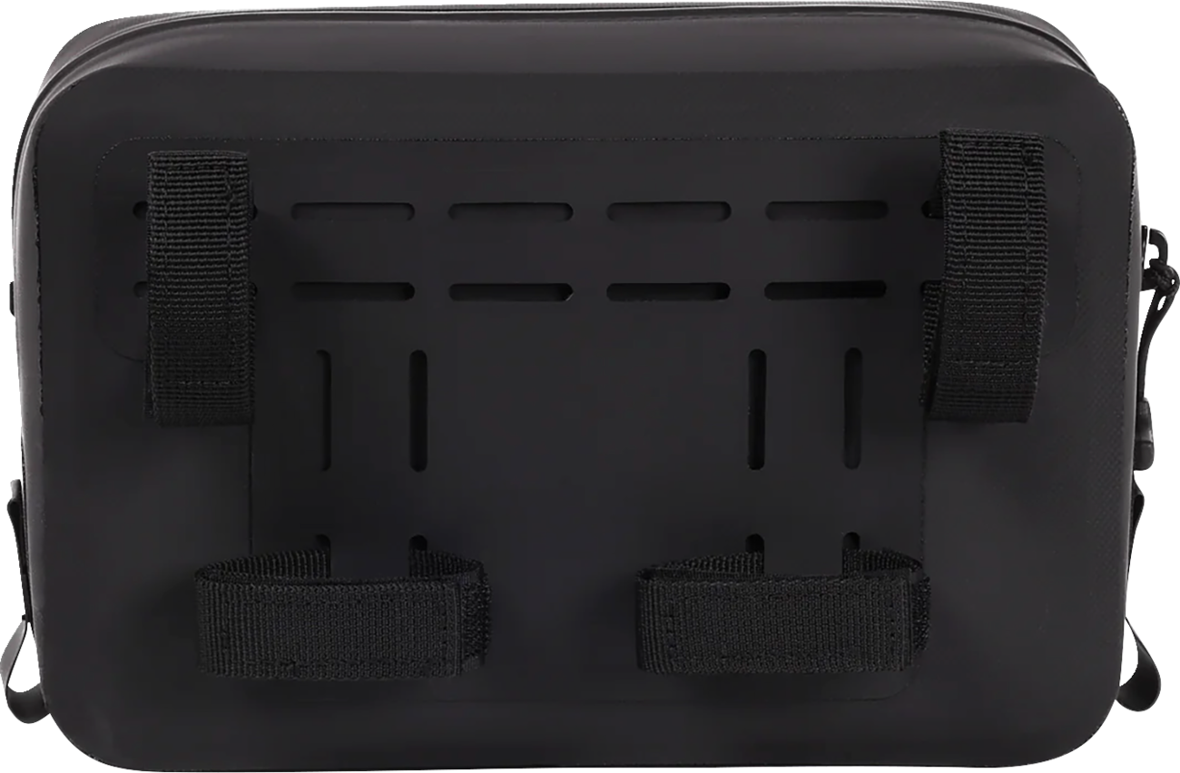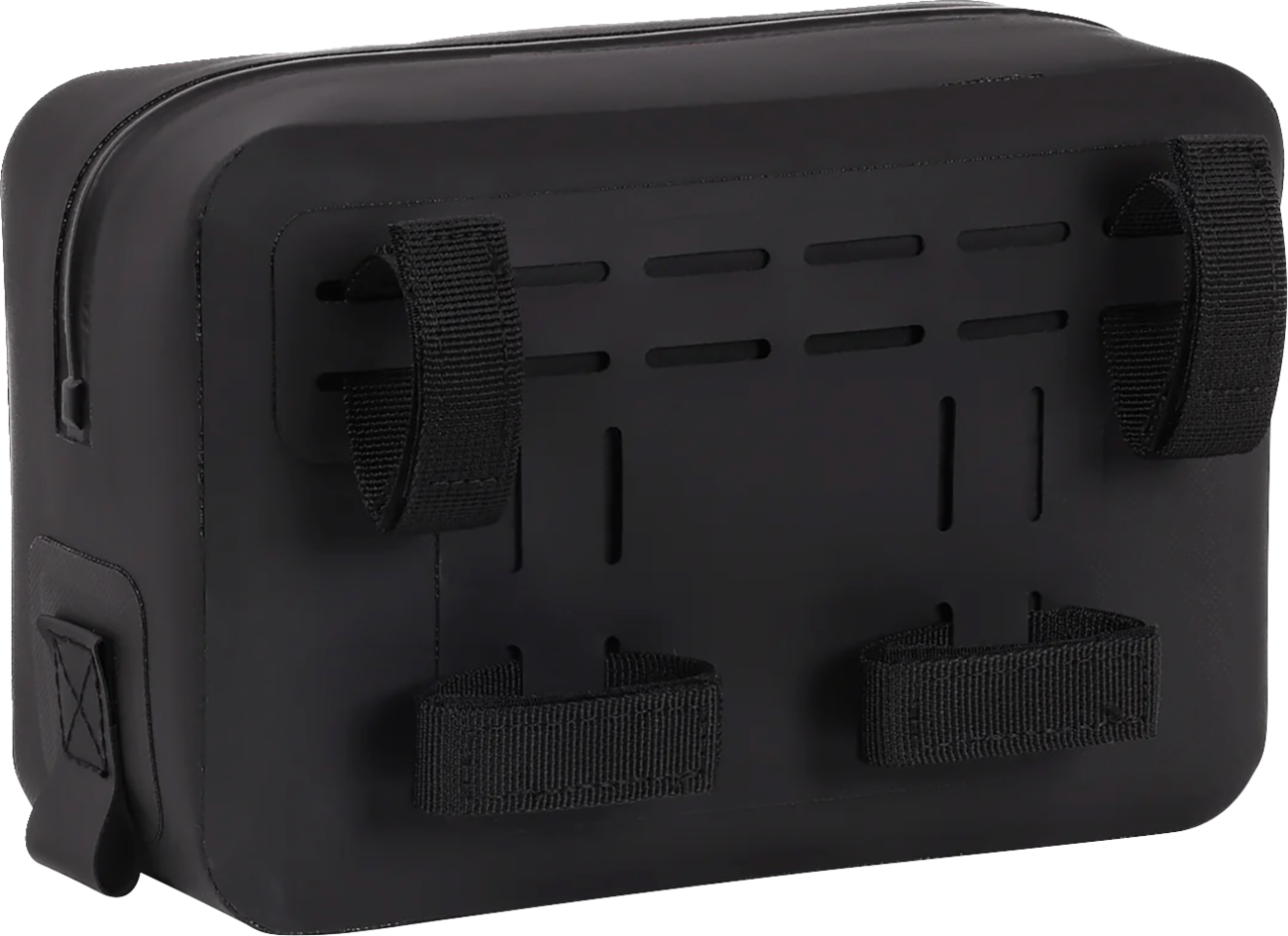 Welded MOLLE webbing on front of pouch and vertical/horizontal webbing on back for attachment to risers or bars